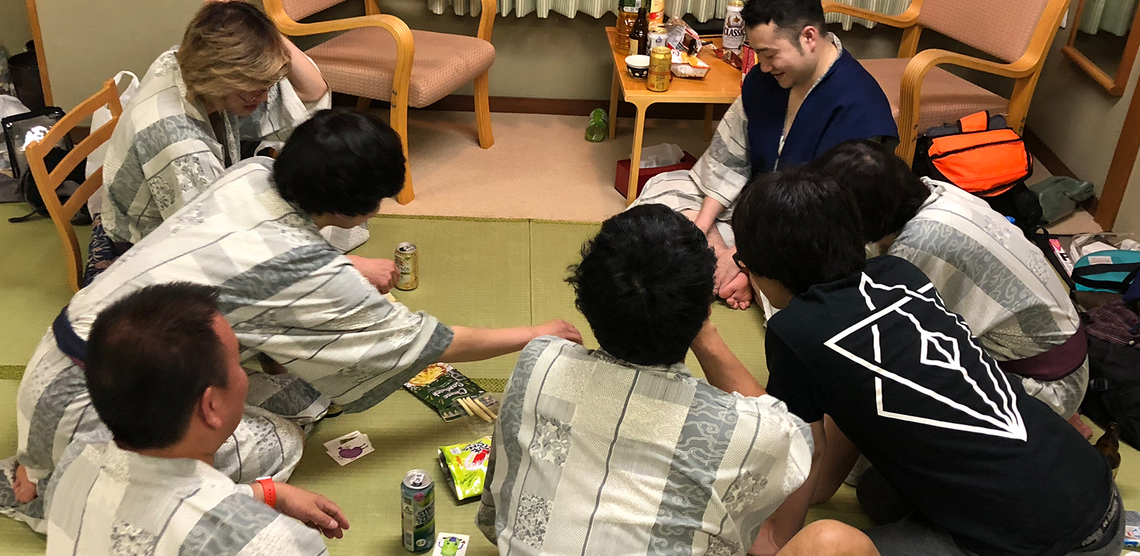 食事の後は明日に備えて早めに就寝…といった事は当然あるはずもなく、ボードゲーム大好きなチームメンバーが持ち込んだゲームで大ゲーム大会!